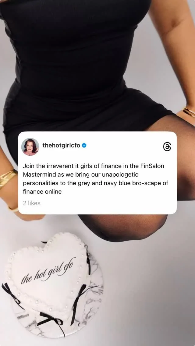 The Hot Girl CFO is who I want to be when I grow up. She's every personality trait, every belief, every philosophy I hold at my highest and am actively working toward. She's who I am when I'm most like myself, and building the brand around that version rather than around wherever I actually am right now was one of the more useful decisions I've made for my own confidence.